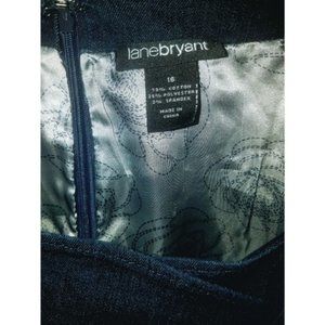 Size 16 Lane Bryant Dark Denim Dress. Plenty of stretch that hugs your curves, but the denim keeps it flattering and hides those bumps! Could possibly fit an 18 because of the stretch. Dress up with heels or go casual with cute sneakers! Dress exterior is in excellent condition, but there are a few snags in the lining and a loose thread near tag (shown in pic 4) - can't see when worn.