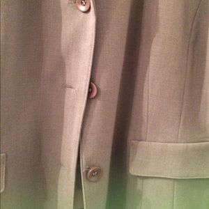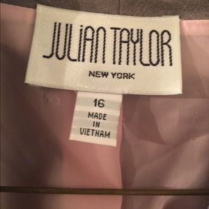 Professional yet comfortable size 16 Julian Taylor of New York Grey Blazer with soft pink lining. 3 button up, 2 faux pockets in the front and firm fitting vs boxy. Super sharp with black or grey pants/skirts/dresses.