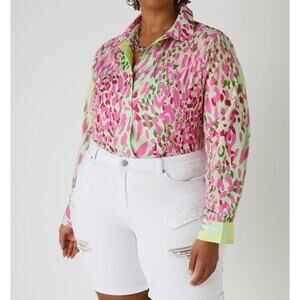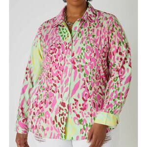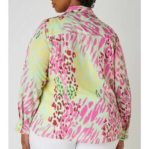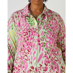 Size 16 Tall/Long Length | Women’s Pink-Green Animal Print Collared Shirt | NWT