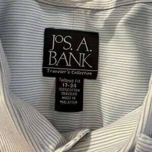 🐻Size 17/34 - Jos. A. Bank - Men's Light Blue and White Striped Traveler's Dres