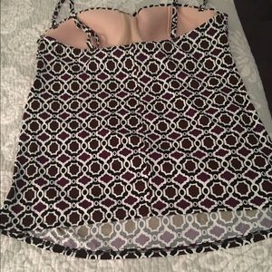 Cute Land's End bathing suit separates. This listing is for the tankini top only (no bottom included) Purple brown white black geometric print. Never worn! (But ripped off sales tag.)