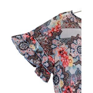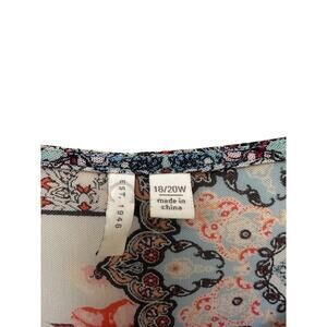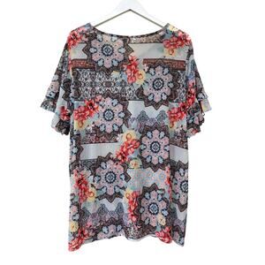 Size 18 W Plus Mesh Cato Boho Floral Colorful Unique Stretch Vacation Top Shirt