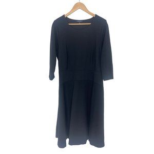Size 1X 16W-18W LANDS' END BLACK PONTE KNIT MIDI DRESS Timeless Classic PLUS SZ