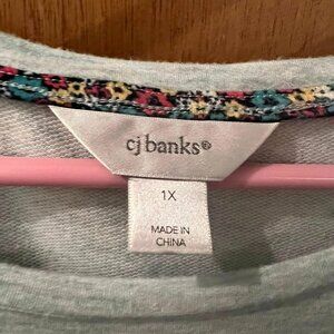 Size 1X - CJ Banks - Light Blue/Green 3/4 Sleeve Heavy Knit Graphic Pullover
