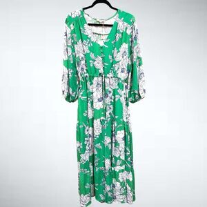 Size 1X Easel Los Angeles Floral Print Tiered Dress in Green