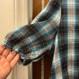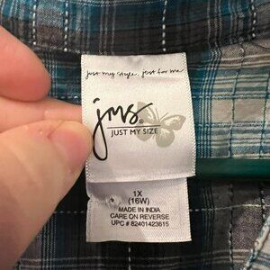 1.170 BWB JMS - Short Sleeve Blue and Black Plaid Button-Down Blouse 1X