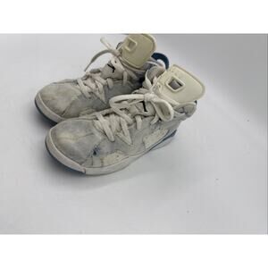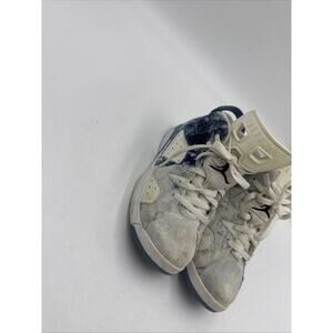The Size 1y Jordan 6 Retro Washed Denim DX6167-100 is a stylish and trendy sneaker for unisex kids. Featuring the iconic denim fabric in a bold blue color, this athletic shoe is part of the Jordan brand's Retro theme. With a retro style design and the classic Jordan 1 model, this shoe is a fashionable and comfortable choice for young sneaker enthusiasts. Perfect for adding a touch of cool to any outfit, these shoes are sure to be a hit with both kids and parents alike.