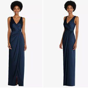 *Size 2 - AFTER SIX - Faux Wrap Satin Maxi Dress Tulip Skirt Navy Blue NEW $261