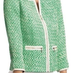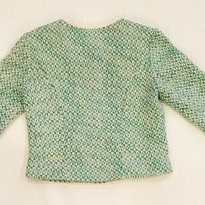Size 2: CAbi Clover Green Tweed Jacket Style 726