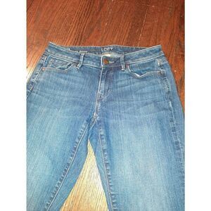 Good Used Condition Women's Size 2 Loft Outlet Curvy Skinny Mid Rise Denim Blue Jeans with Pockets and Belt Loops