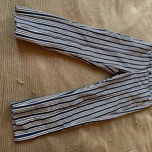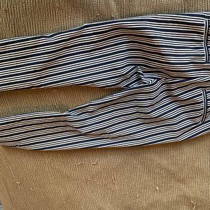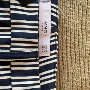 Size 2 Navy Blue, striped cropped pants from Mango Basics. Sits mid-waist. A little tight if you have muscular calves