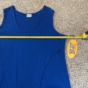 Brand new. Never worn. Size 2 (Medium/Large) Oh My Gauze! cobalt blue Lorelei wrap dress. Gorgeous cobalt blue, sleeveless cotton gauze asymmetrical wrap dress with a frontal flapover detail design. Perfect on its own or worn over pants or jeans! Made of the softest cotton, this dress is lightweight and perfect for your next summer vacation or outing around town!