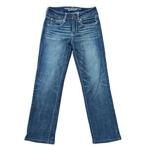 Size 2 Short Straight Leg Jeans AEO Dark Wash Super Stretch Denim American Eagle