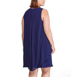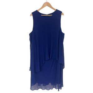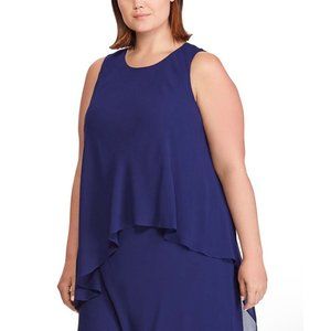 Size 22W 3X RALPH LAUREN RICH SAPPHIRE CAPE-OVERLAY GEORGETTE DRESS Plus Size