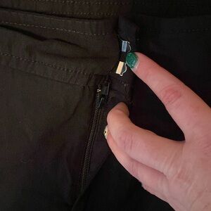 Torrid studio work pants size 24r. Slight stain on the left leg that I haven’t tried to remove and is reflected in price. Has zip and hook closures