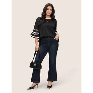 Size 26 4X BloomChic Contrast Mesh Bell Sleeve Blouse Plus Size Top Blouse