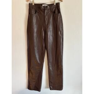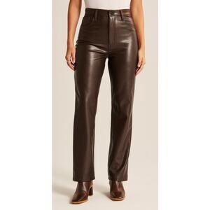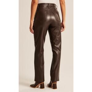 Size 27 Abercrombie & Fitch Curve Love Vegan Leather 90s Straight Pant in Brown