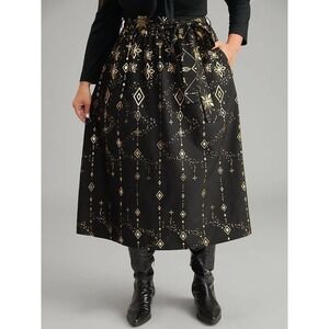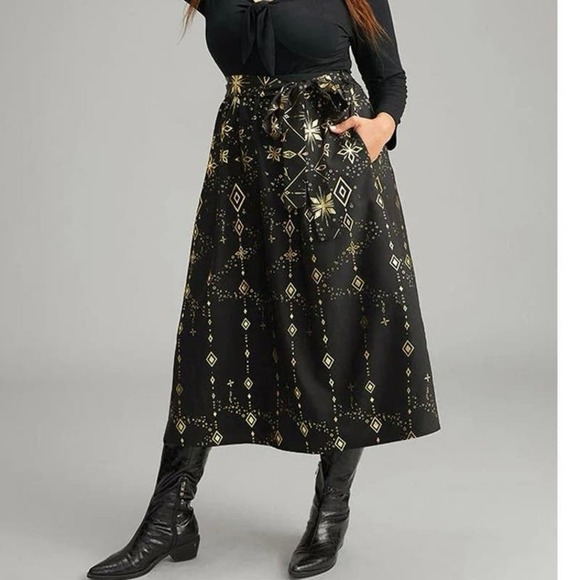 Size 28 5x BloomChic Glitter Geometric Belted Pocket Skirt