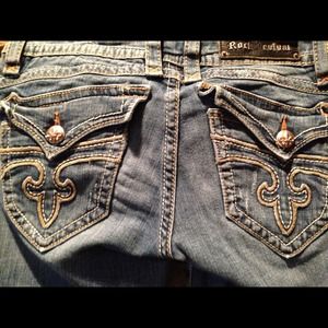 These are such a beautiful pair of rock revivals in wonderful condition! These size 29 jeans are very comfortable super stretchy and a wonderful jean well worth the money!