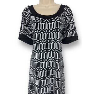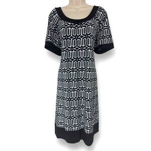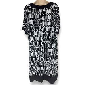 Size 2X 18 20 Tiana B Black & White Geometric Print Shift Dress Summer Plus Size