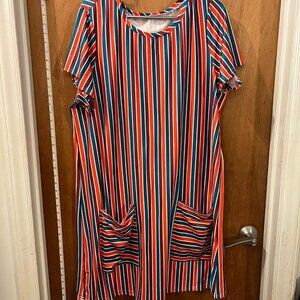 MP2035 AAD-D Shein - Multi-Colored Striped Shift Dress w/Front Pockets 2XL
