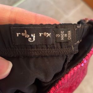 Ruby Rox mini dress size 3. Black satinlike skirt, pleated waist and hot pick sequined at the top! Worn one in great condition!