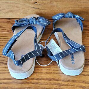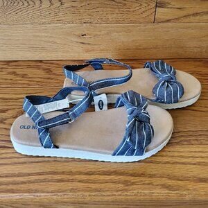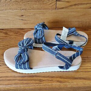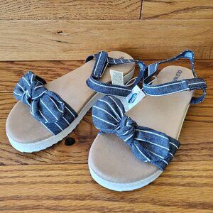 Size 3 Striped-Chambray Bow-Tie Sandals for Girls NWT