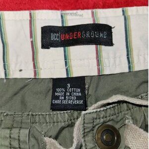 Size 3 Women's Capri Cargo Pants in Army Green by Underground are perfect for a stylish and functional addition to your wardrobe. Made from comfortable cotton material, these pants feature side pockets, a drawstring closure, and a straight leg style. The solid green color and military-inspired theme give a trendy look, while the lightweight and easy-care features make them convenient for everyday wear. Ideal for a casual yet chic outfit, these Capri pants are a versatile choice for any woman's closet.