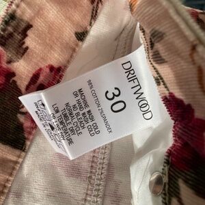 Size 30 Driftwood pinwheel, corduroy floral jeans