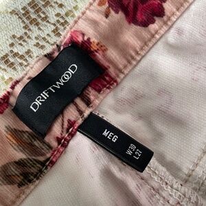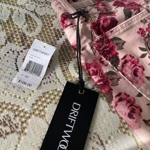 These jeans are new in great condition, cut off driftwood, corduroy, floral jeans. Roll them up, or enjoy them with a shabby look. Pair with a little pink sweater for romantic fall look.