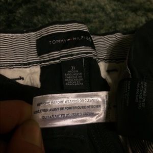 As shown in one of the photos, these have never been worn. My waist size is constantly fluctuating; being that these are a size 31, I assumed I may grow into them. I've yet to get past a 30 so these fabulous Hilfigers are deserving of a better home! Zero wear and tear, solid Navy Tommy Hilfiger men's shorts. Perfectly neutral for any casual or dress up event! Negotiable as always!