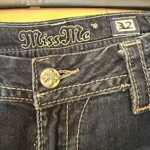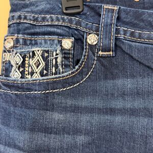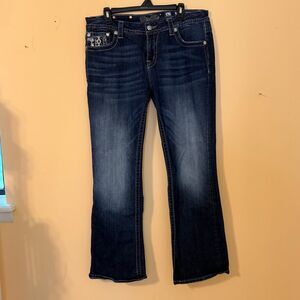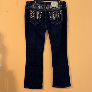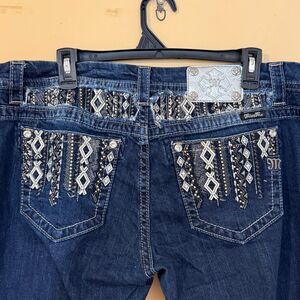 Size 32 Miss Me Jeans Mid Rise Easy Boot Cut Embellished Jeweled Pockets