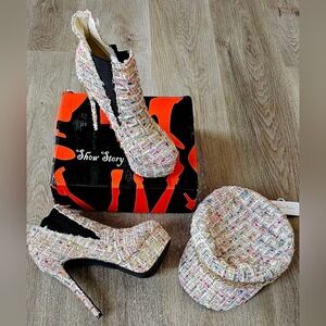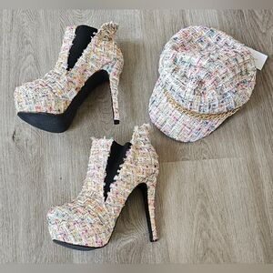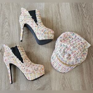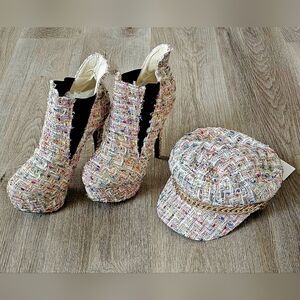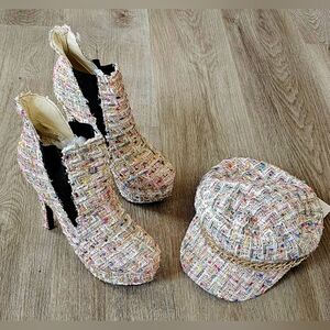 Size 39 Show Story Tweed Platform Booties & Matching Cap