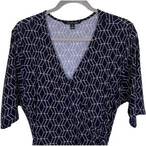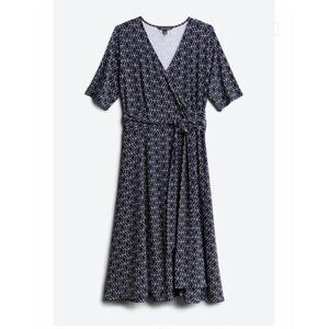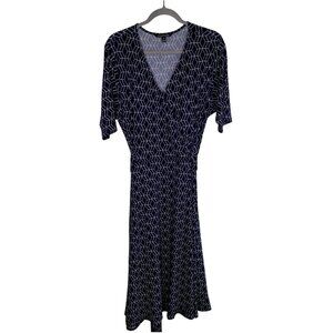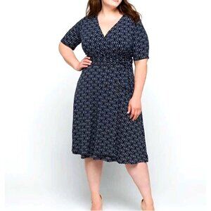 Size 3X 22 24 Navy Blue Geometric Print Midi Wrap Dress Spring Summer PLUS SIZE