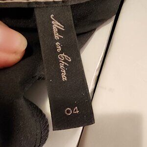 Washable, dry clean recommended. Imported. Non-stretch crepe.