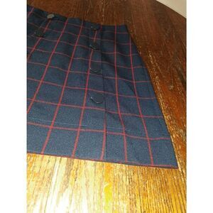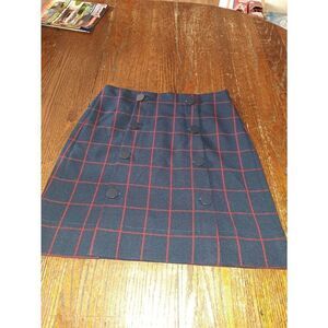 Good Used Condition Women's Size 4 LOFT Outlet Blue and Red Rear Zip Over the Knee Skirt with Button Detail, Faux Buttons, Lined School Girl Style Skirt with Two Front Slits