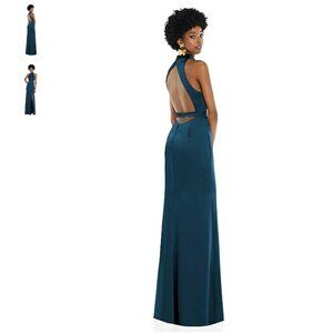 *Size 4 - LOVELY - High Neck Backless Maxi Dress Gown Slim Belt NEW $242 msrp