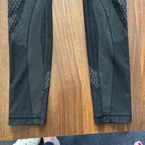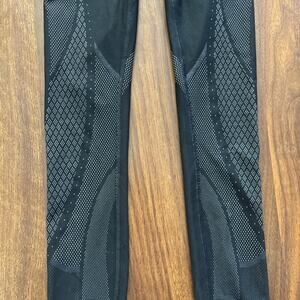 The product is a pair of Size 4 Lululemon Mapped Out High Rise Tight 28" Black leggings. Made from a blended fabric, these leggings feature a pull-on closure and are designed for activewear occasions, specifically for activities like gym workouts, yoga, running, and weightlifting. They are designed for comfort with features like compression, moisture-wicking, quick-dry, and breathable fabric. The geometric pattern and skinny leg style make them suitable for various seasons like summer, fall, and spring. Easy to care for with machine-washable instructions, these leggings are a versatile and high-performance addition to any woman's activewear collection, with a theme focused on fitness and wellness.