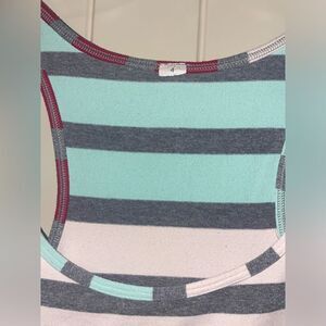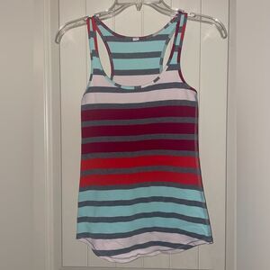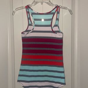 Size 4 Lululemon racerback striped athletic tank top white teal red horizontal