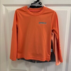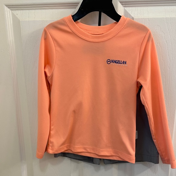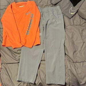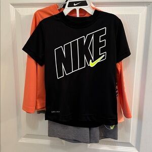 2 Magellan outfits, one with shorts and one with pants. See close up pictures of shirts for actual colors! These are super cute on especially if Dad has matching shirt to wear! The Nike shirt does have something on the front that I noticed, see picture, I am not sure if it will come off or not. Great summer additions!