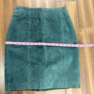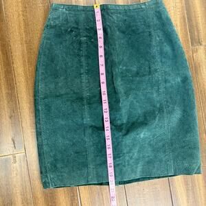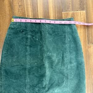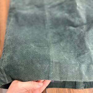 BEAUTIFUL genuine seude leather skirt, dark green color with a bluish undertone. I wish it fit me because I’d be keeping it otherwise 👀