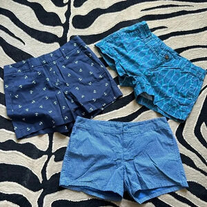 Bundle of 3 pairs of shorts. The North Face (teal & purple), Gap (Hadley - blue with light blue tiny hearts), & Valerie Bertinelli (navy blue with anchors). Great condition.