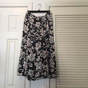Size 4 flows while you walk. Wrap around with buttons. Color is meant to look washed and casual. Super fun for sunny days. Good condition. Loose fit t shirt and casual sandals would make this skirt shine!