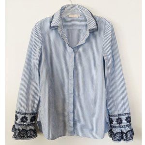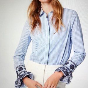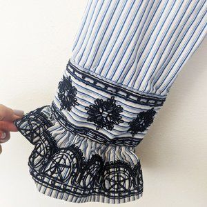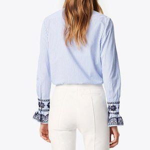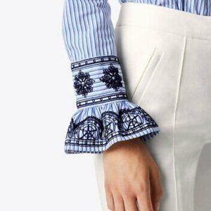 Size 4 Tory Burch Womens Paige Blue Striped Button
