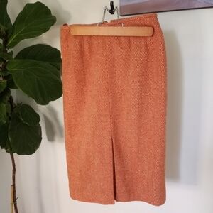 Size 4 Vintage Kasper Wool Pencil Skirt Tangerine Tweed Business Academia