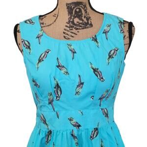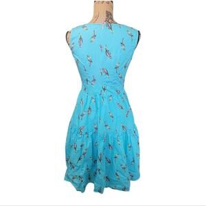 Size 4 eShakti Turquoise Blue Parrot Bird Print Sleeveless Cotton Mini Sun Dress