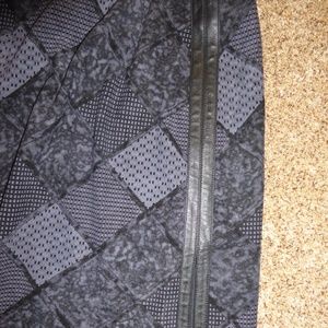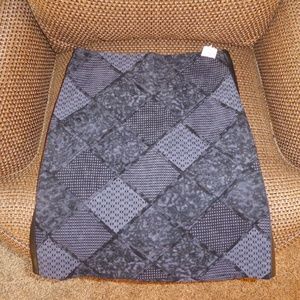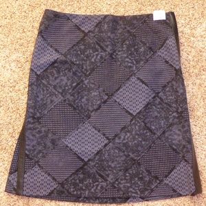 Great looking Blue Ice skirt shades of grey/black. Leather like trim down sides with slit. side zip. Versatile style and color that goes with anything for casual or dressy events. waist approx 28"
