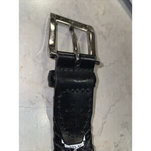 Size 40/100 Black Woven Men's Belt Silver Buckle preowned good condition 48.5” from tip of buckle