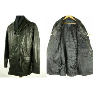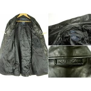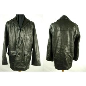 Size 42 NAUTICA Genuine Soft Lambskin Leather Jacket Black Men's Winter Coat