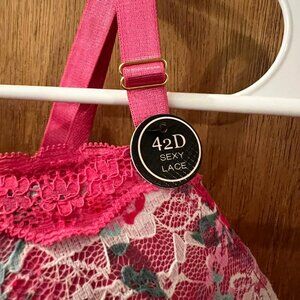 Size 42D - Body Frosting - NWT - Pretty Pink and Floral Toned Bra w/Underwire